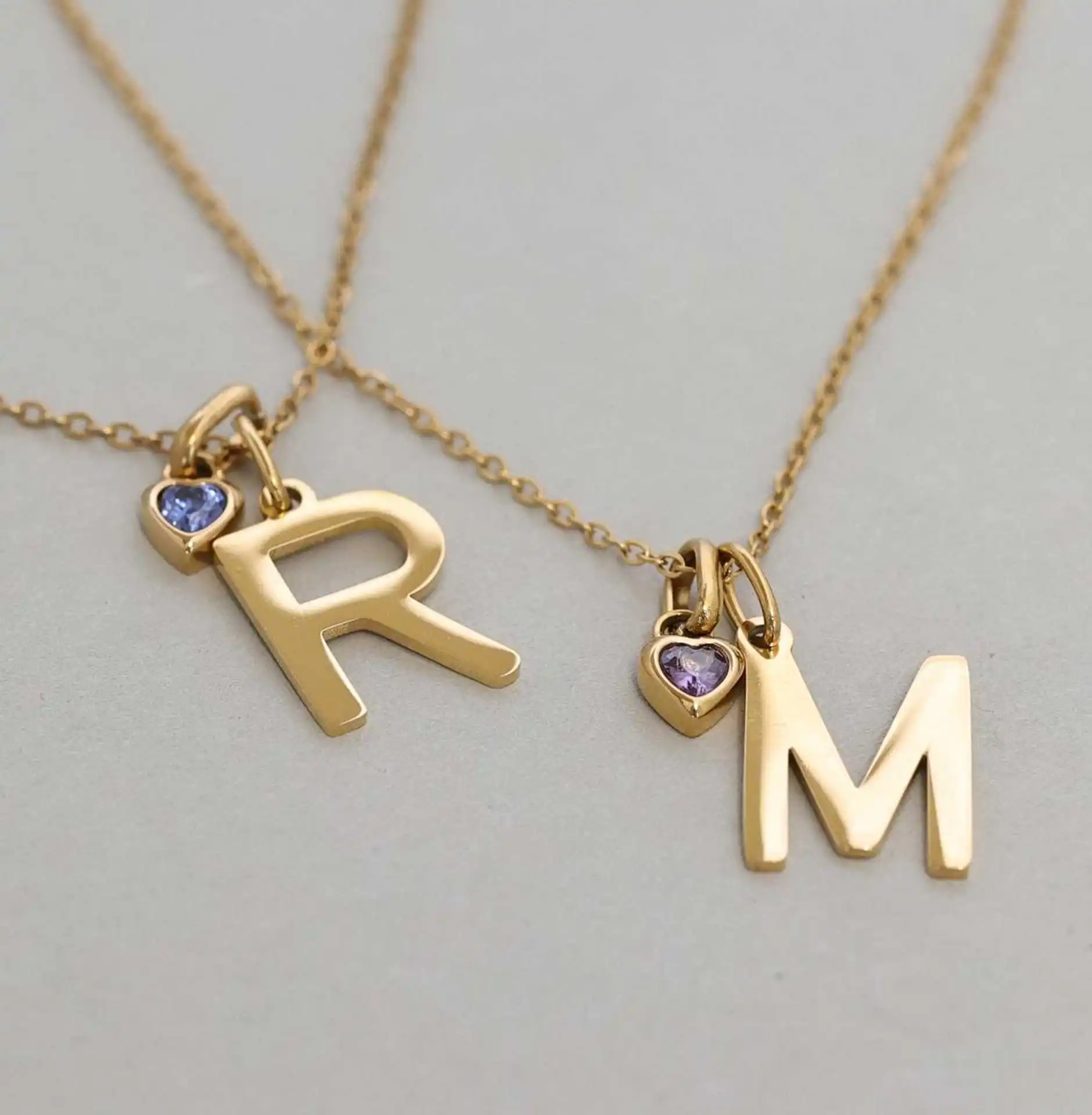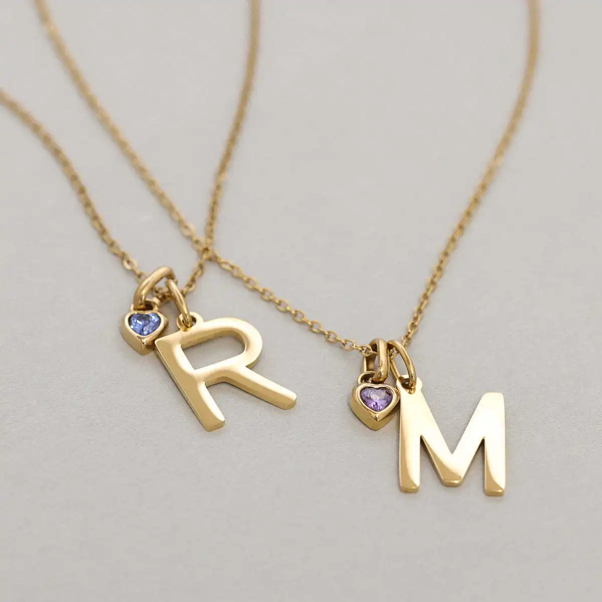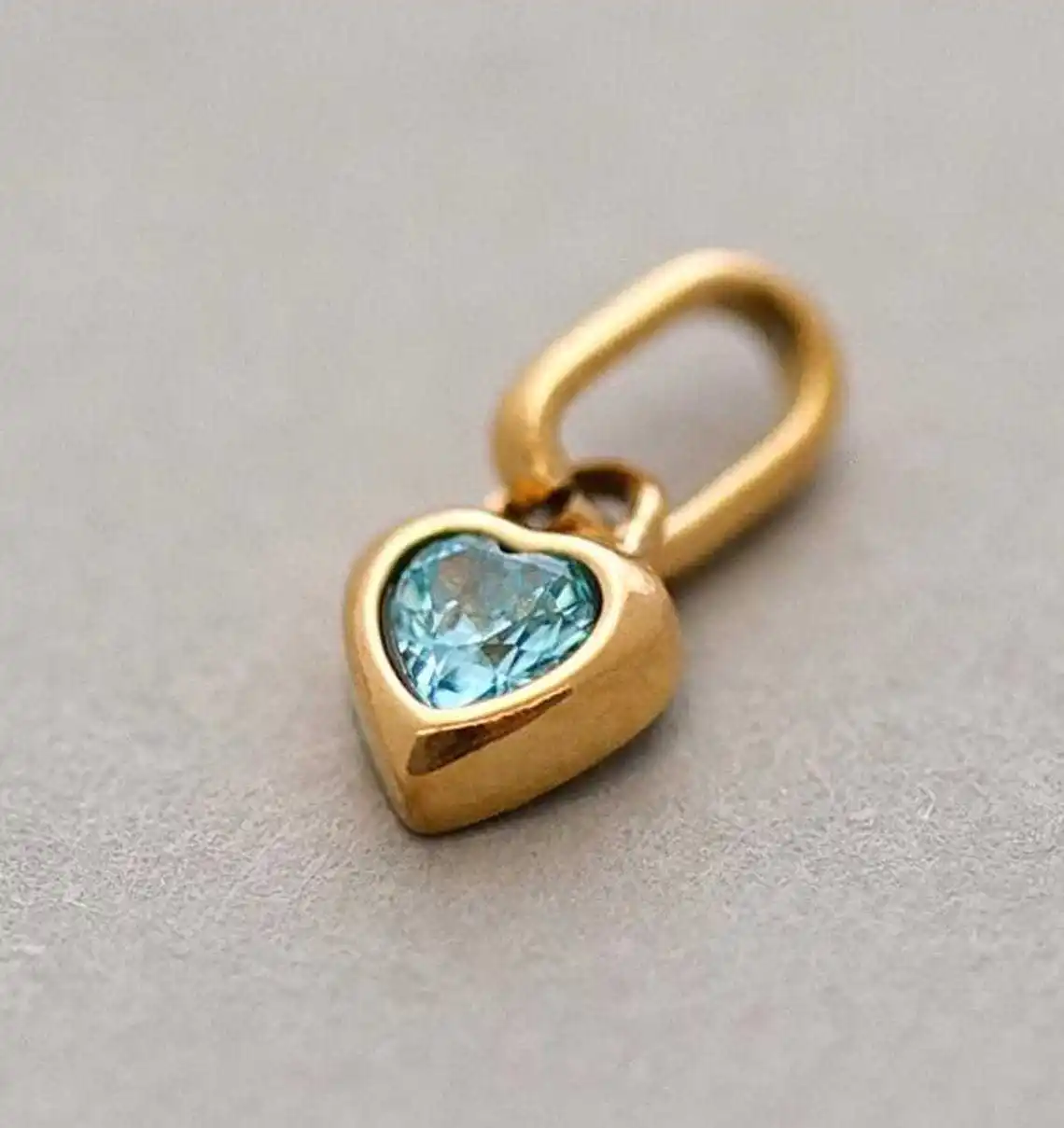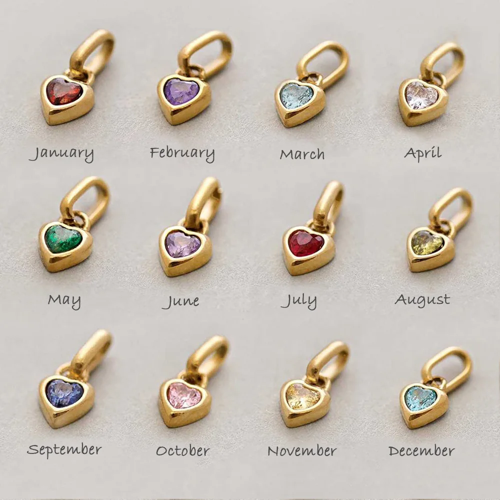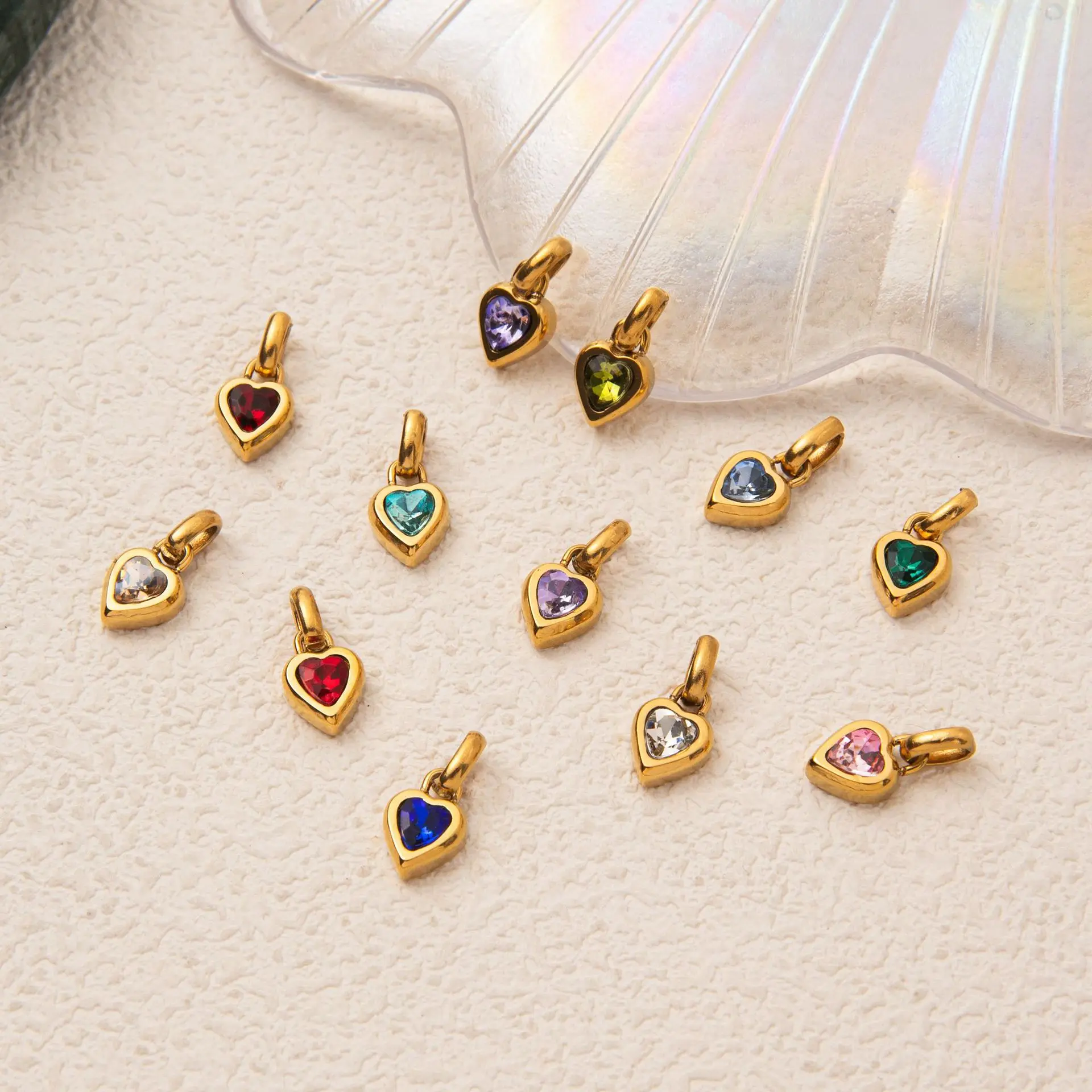 Heart Pendant CZ Birthstone pendent For Women Gold Color Stainless Steel Charm