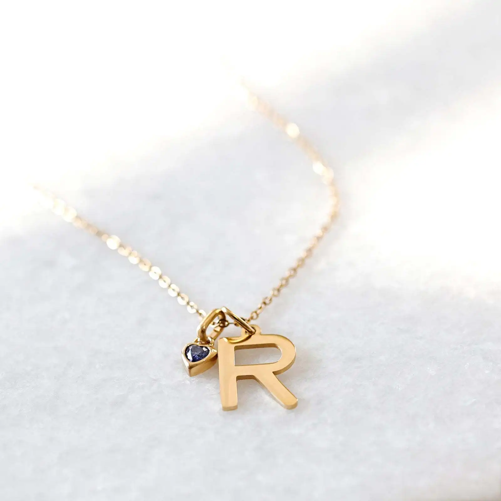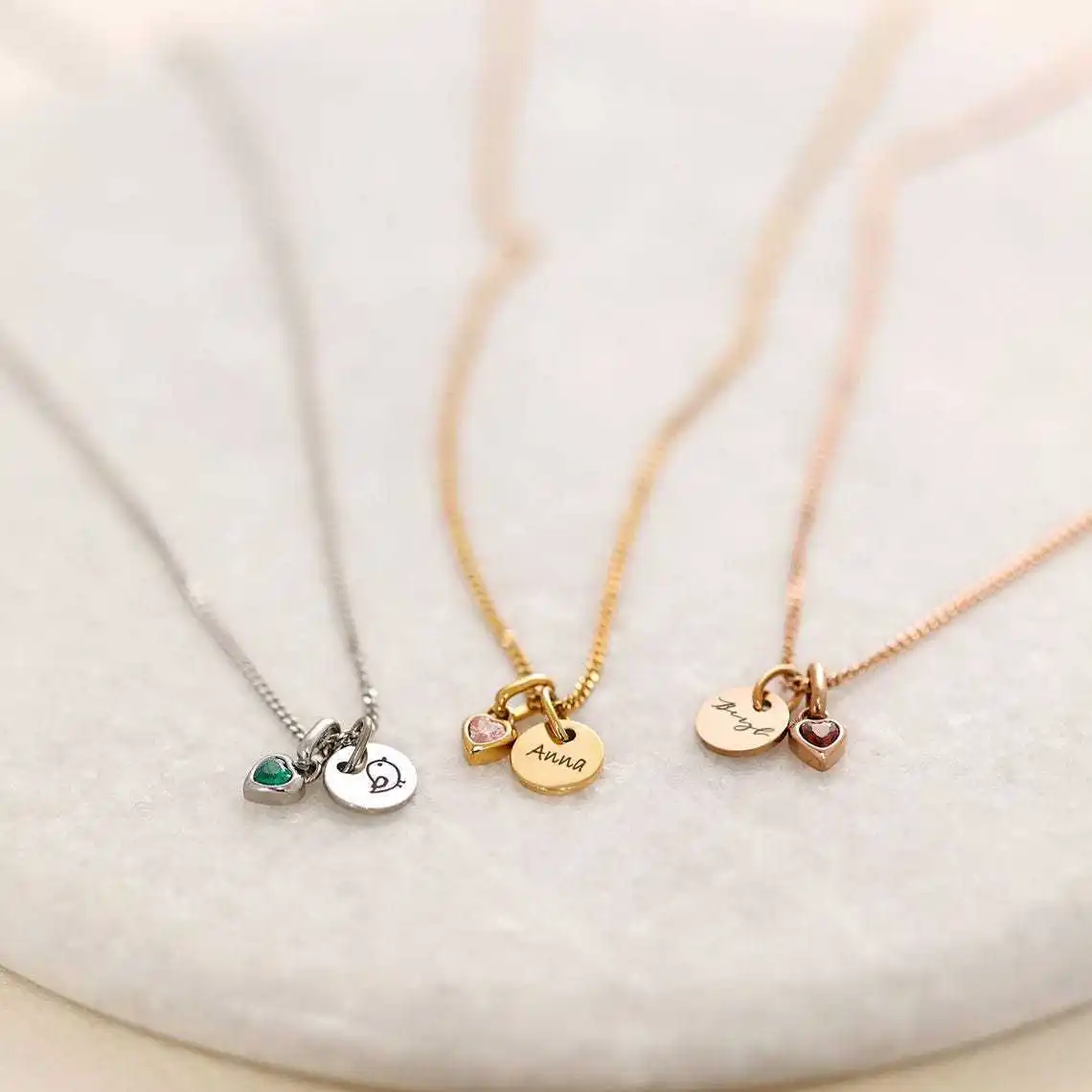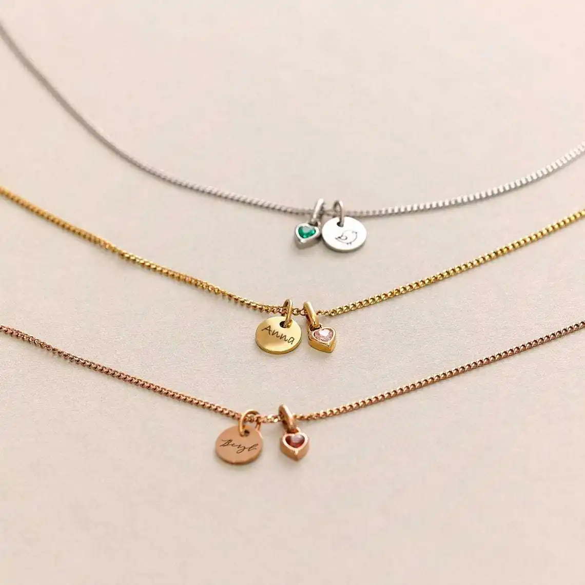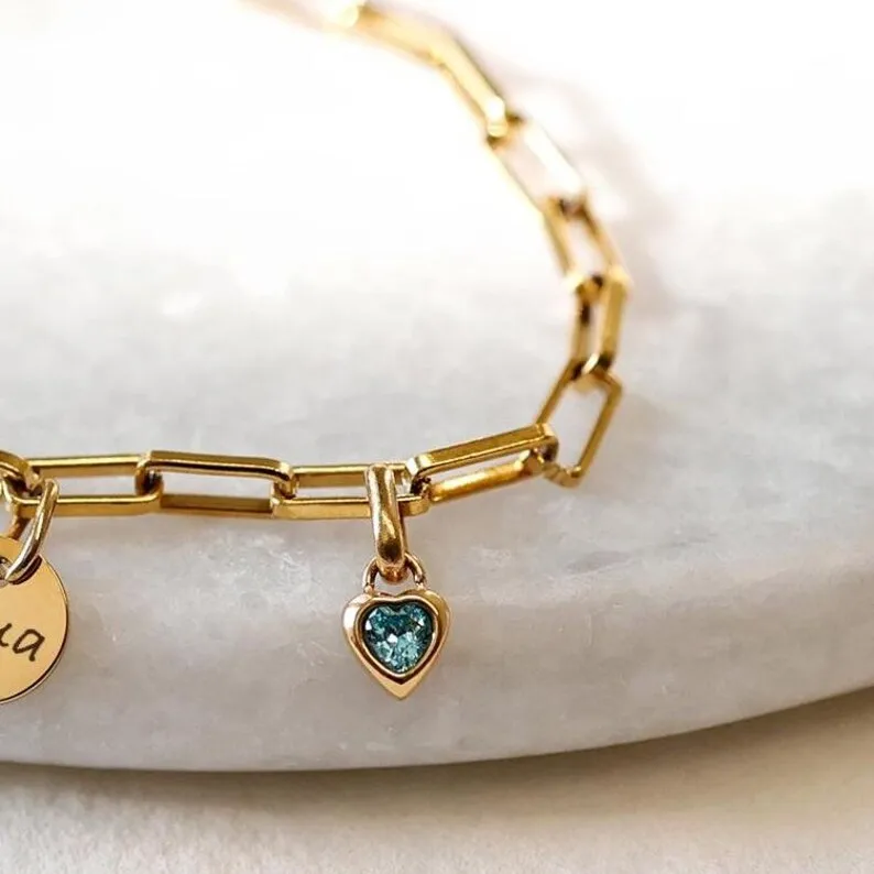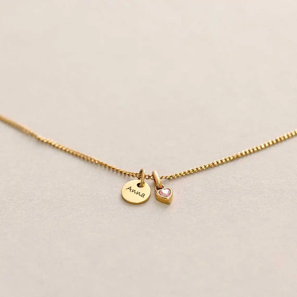 Heart Pendant CZ Birthstone pendent For Women Gold Color Stainless Steel Charm