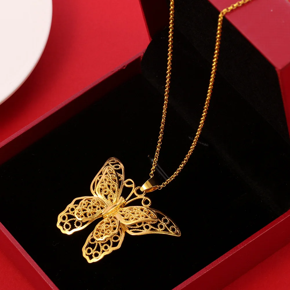 14K Gold Color Butterfly Pendant Necklace