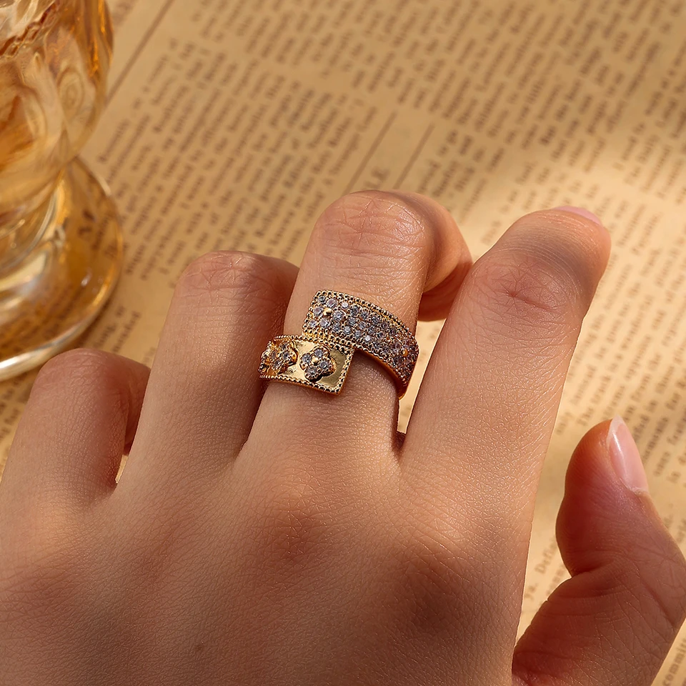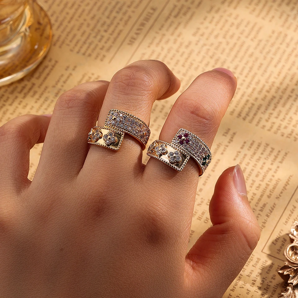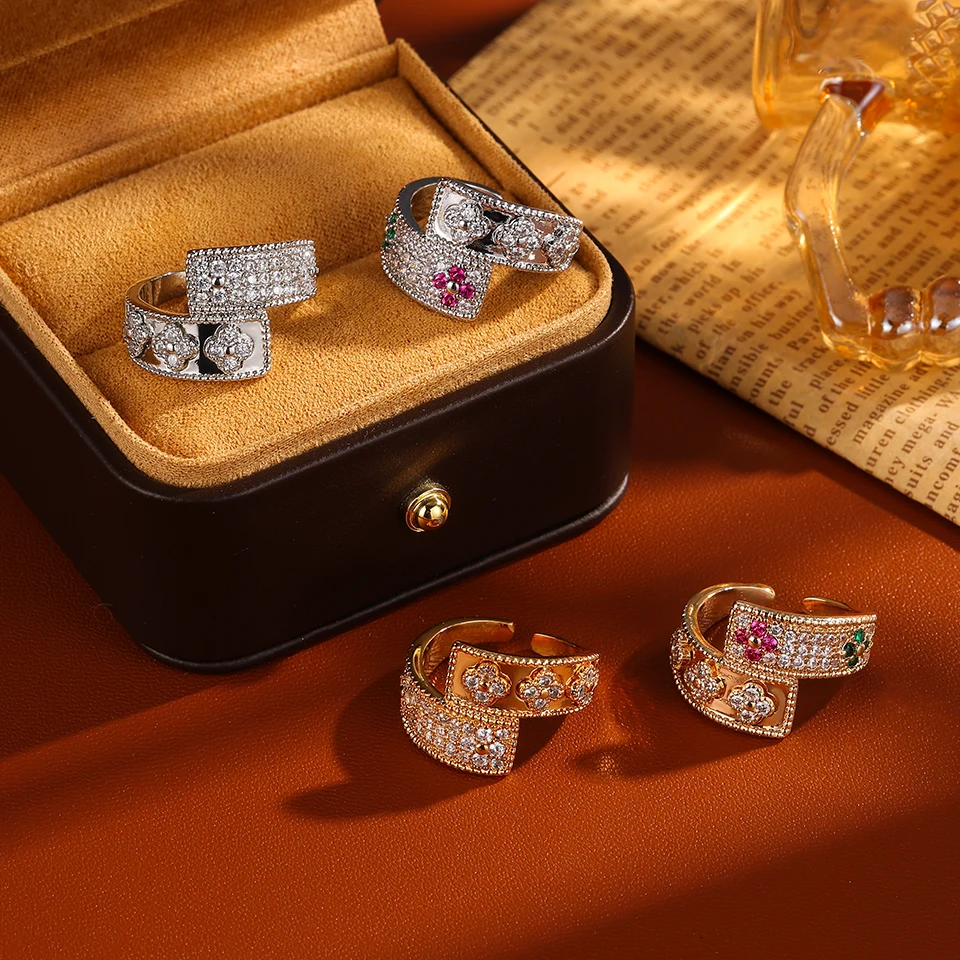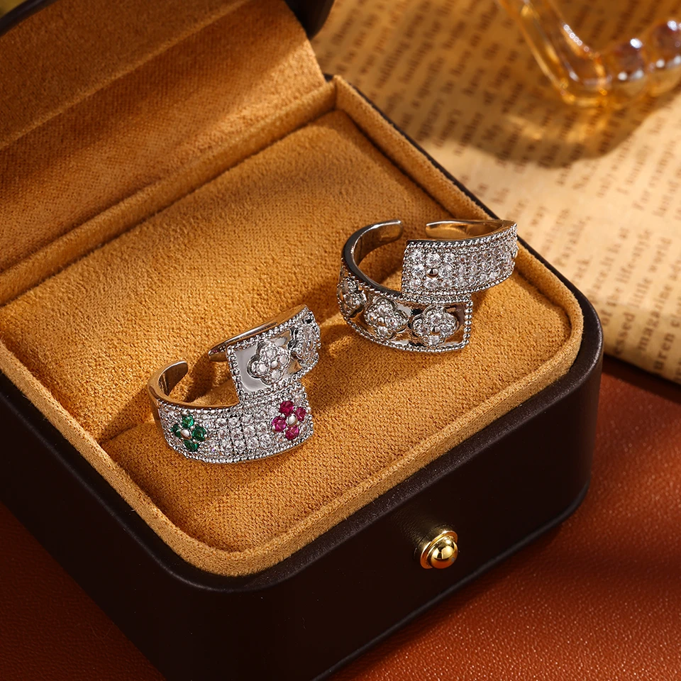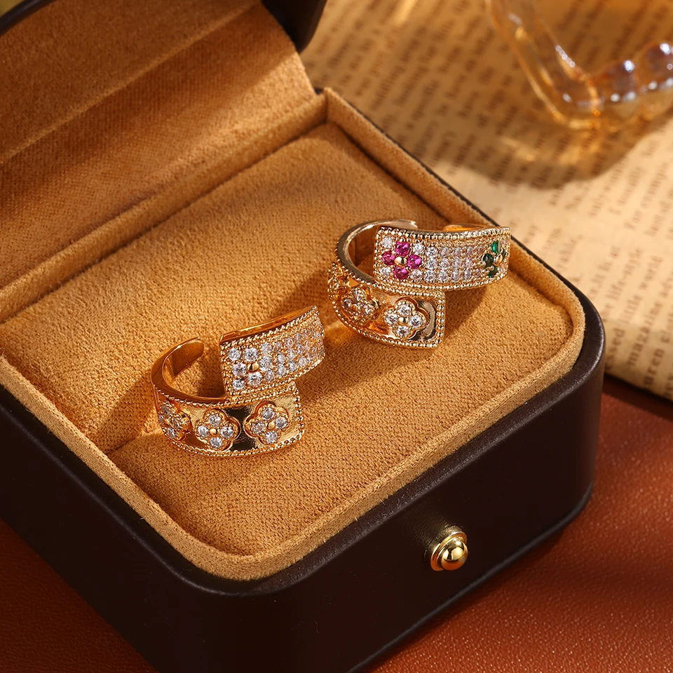 Four-Leaf Flower Zircon Cuff Bracelet – Colorful CZ Bangle for Women